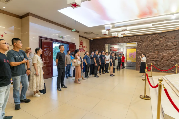 现场教学环节,组织参观了苏家埠战役陈列馆、淠史杭工程展览馆。在苏家埠战役陈列馆中,学员们通过历史文物和影像资料,深入学习战役中的英雄事迹和革命精神;在淠史杭工程展览馆,学员们了解了工程建设者的艰苦奋斗历程,从工程规划到群众参与的感人故事中汲取了丰富的创作灵感。这些实地教学活动让学员们更加直观地感受到安徽红色文化的深厚底蕴。与此同时,一支由参训学员组成的小分队,赴西河口乡中心学校开展文艺志愿服务活动,深受师生好评。