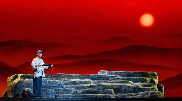 黄梅戏素以明快抒情见长,唱腔纯朴清新,细腻动人,表现力丰富。剧作将传统戏曲与现代叙事巧妙融合,保留黄梅戏艺术特色,又让人物语言个性化,动作身段兼容传统性与现代感,传递黄梅戏的律动之美,又带来青春时尚的创新性表达。李安本的唱腔设计,随着人物的精神转变,音调的处理和配乐相映生辉。主演虞文兵的唱念做舞表现了传统程式的深厚功力,也融入现代生活体验,体现了鲜明的人物个性,其爆发力、控制力、节奏感,将李安本打小算盘时的狡猾、为人处事的投机、与女兵交流时的小心思,最后的生命选择,颇有分寸感地表现出来。作品尊重原著精神内核,以微观视角和戏曲叙事语境,扩大了黄梅戏的剧种优势,实现了不同艺术样本的审美共鸣。黄梅戏《太阳山上》提供了现代戏创作的新样本,为黄梅戏舞台增添了新形象,更折射了中国人民选择坚定跟党走的历史逻辑和人心所向,具有超越时空的价值意义。