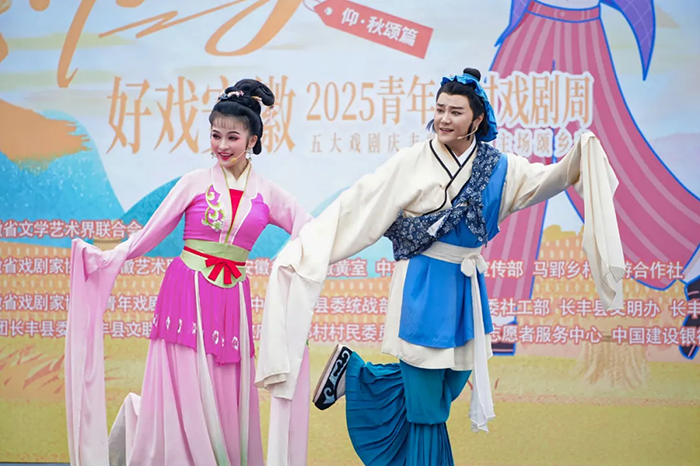 稻浪翻金、戏腔绕梁。9月20日—21日,由省文联主办,省剧协、安徽艺术职业学院、省政协徽黄室、长丰县委宣传部等联合承办的“好戏安徽——漾·Young”2025青年乡村戏剧周第三季“仰·秋颂”,在合肥市长丰县杨庙镇马郢村全景上演。徽剧、黄梅戏、庐剧、泗州戏、皖南花鼓戏——安徽五大代表性剧种首次同台庆丰收,以“青年主场+村民主角+市集赋能”的融合范式,把文化惠民做到田间地头,用文艺“活水”激荡乡村振兴“一池春水”。